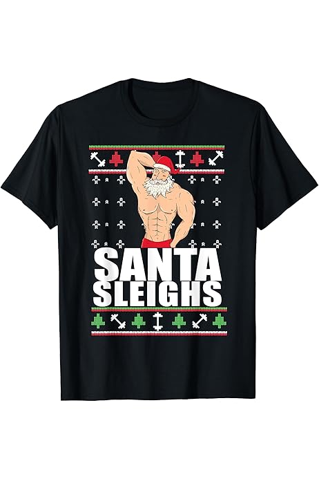 Amazon Com North Swole Ugly Christmas Sweater Sexy Fit Santa Claus T Shirt Clothing Shoes Jewelry